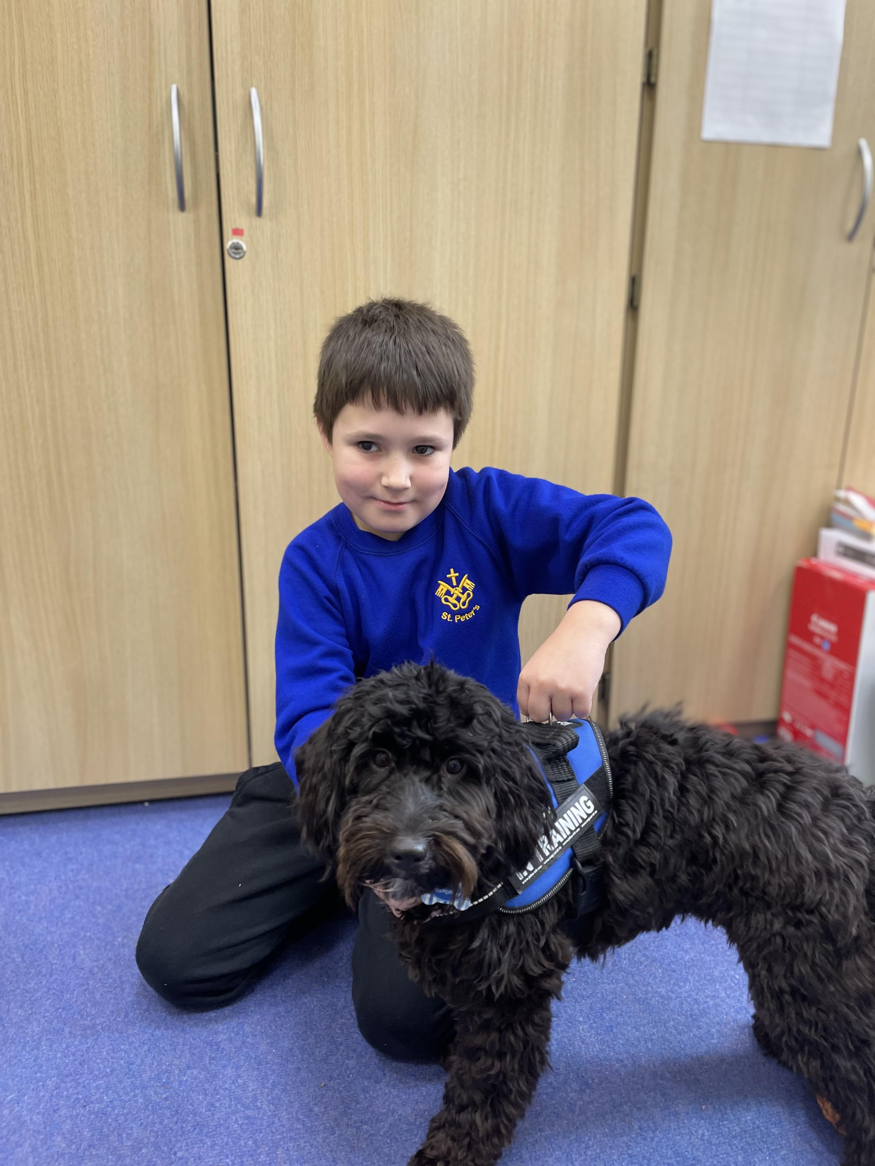 When I'm not in school, I live with Mrs Mynott and her family, including three other dogs, two Ragdoll cats and two giant rabbits! I love to play chase with the other dogs at home, especially with Nova, who is a golden retriever and my big sister! I am also a much-loved member of the St. Peter's family, who welcomed me into school from eight weeks old.