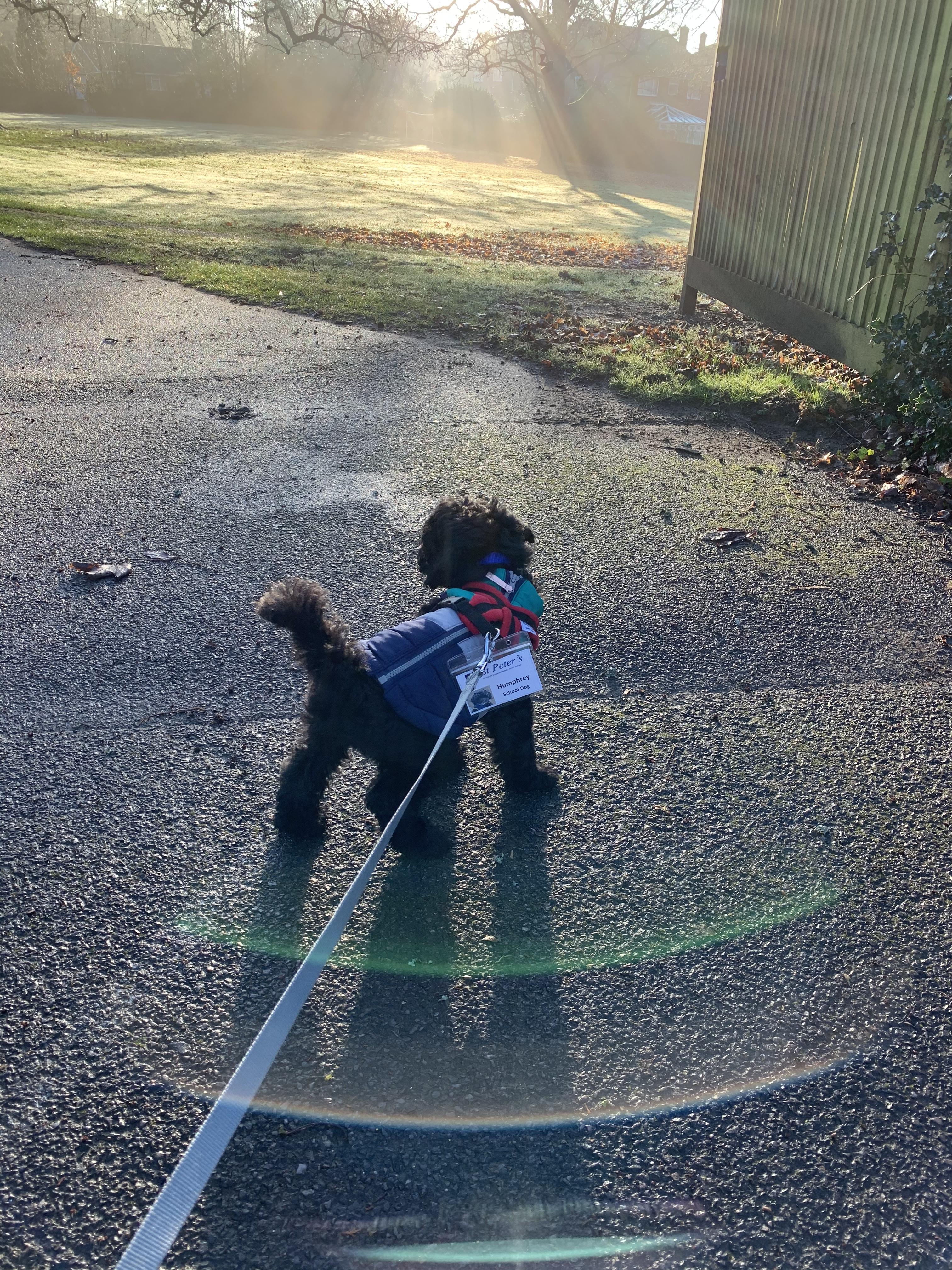 Hello, my name is Humphrey and I am a miniature labradoodle, born in November 2020. My Dog Mum is a miniature labradoodle and my Dog Dad is a miniature poodle. My Human Mum is Mrs Mynott, the School Business Manager at St. Peter's Church of England Junior School.