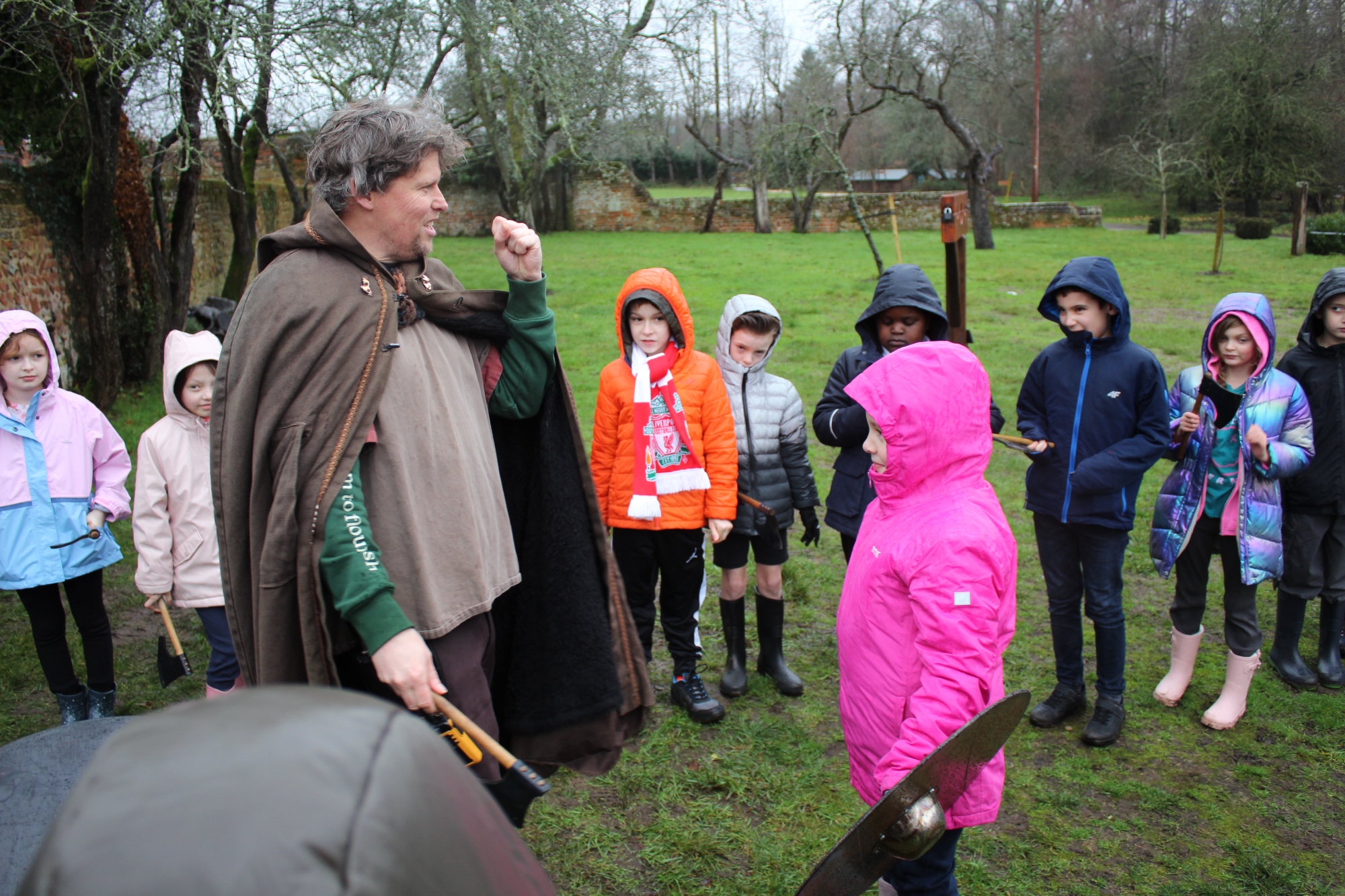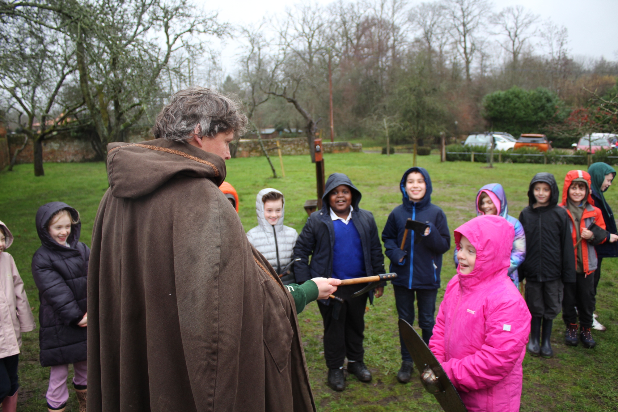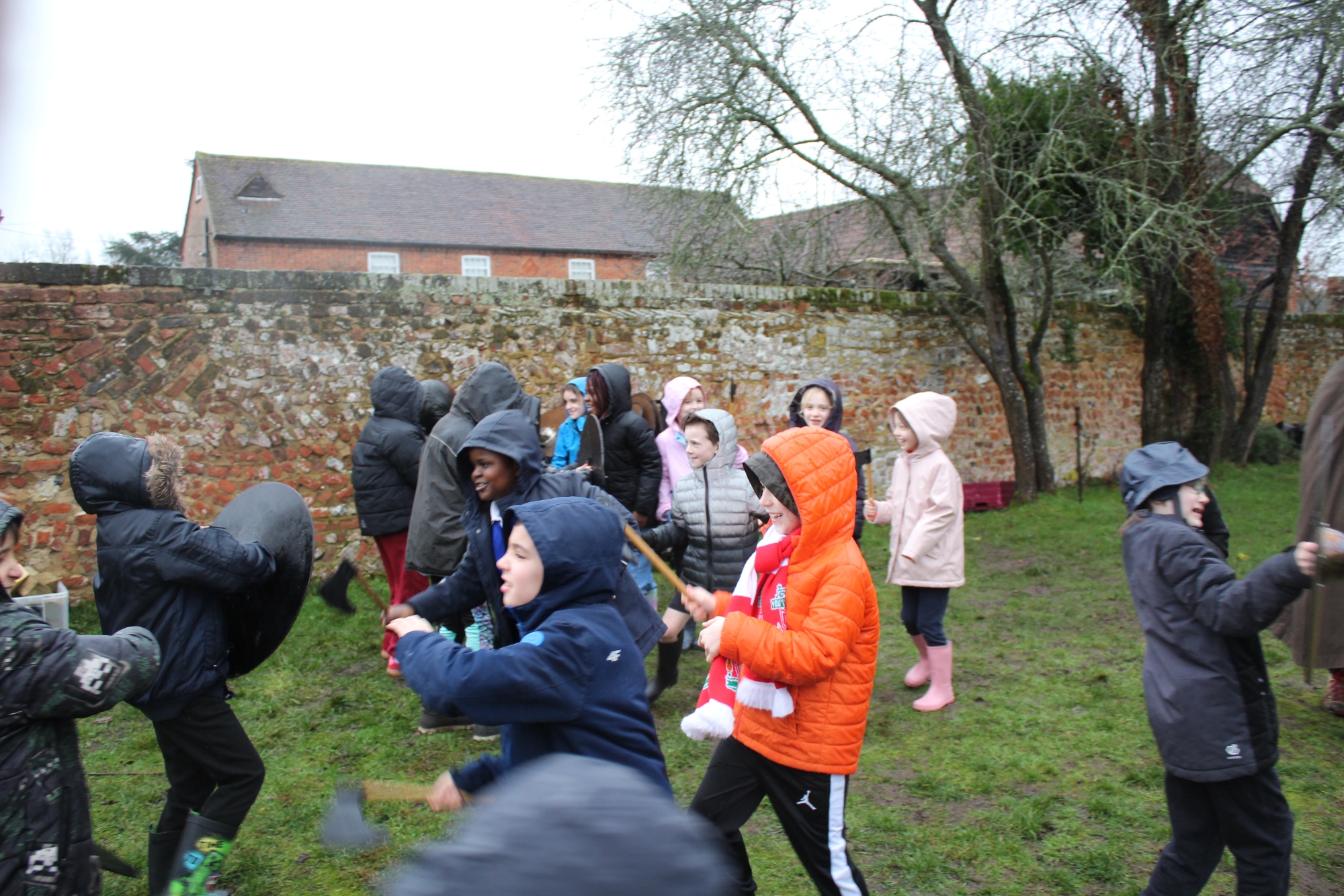 Having said that, they're not the sort of year group to let the rain get in the way of having lots of fun and learning new skills. The first part of the trip involved learning Viking battle moves, exploring Ufton Court's magnificent Tudor mansion and taking part in a 'Thing' - a Viking trial! Fortunately, we all survived the battle and, gruesome as it looks, everyone was still innocent and free after the trial- even those who'd had their lungs removed as a punishment!