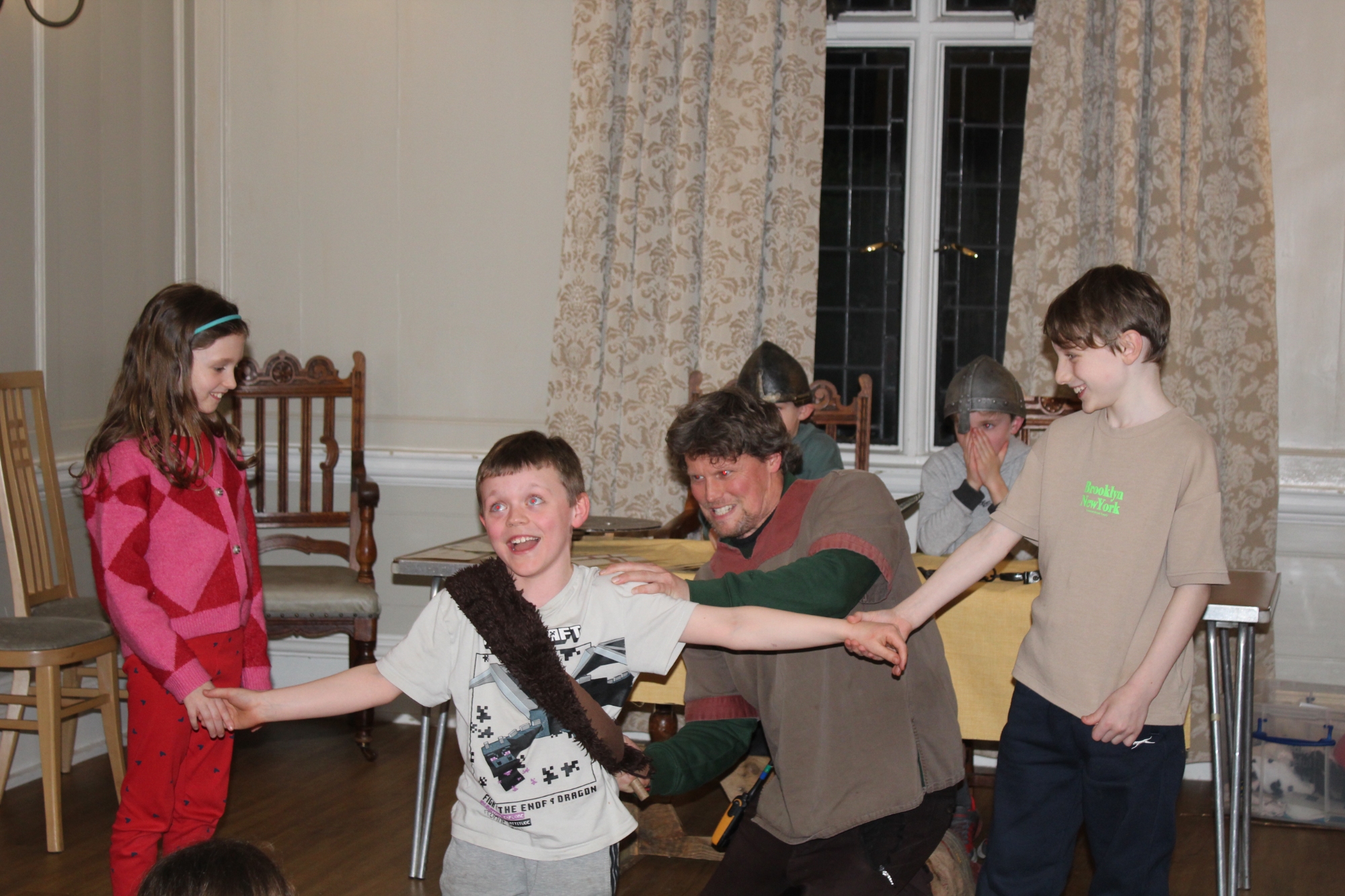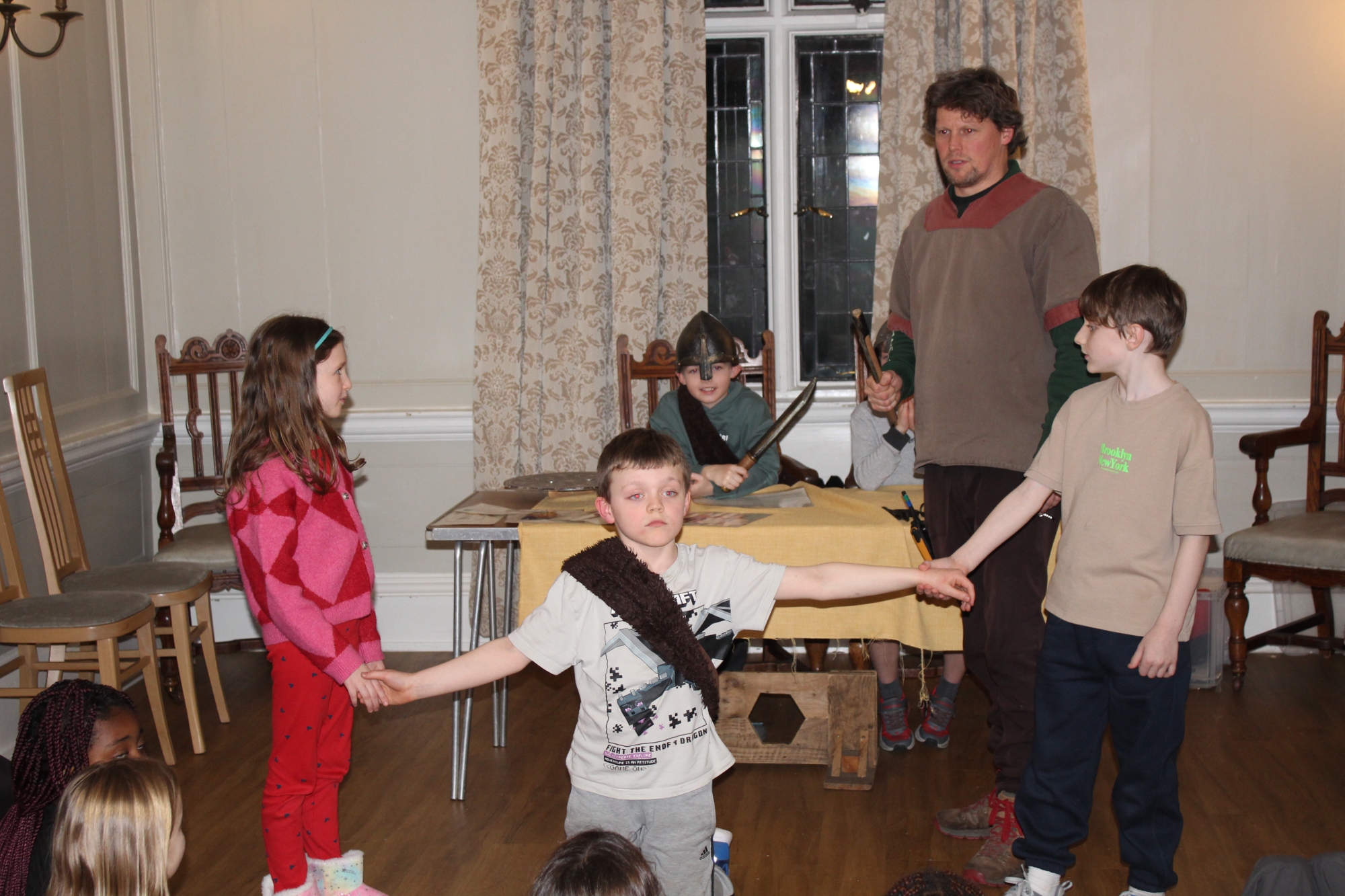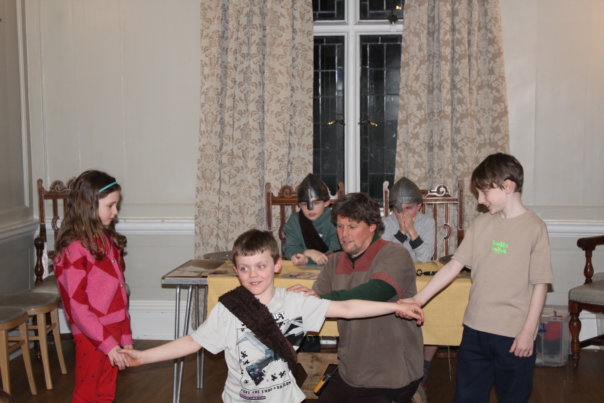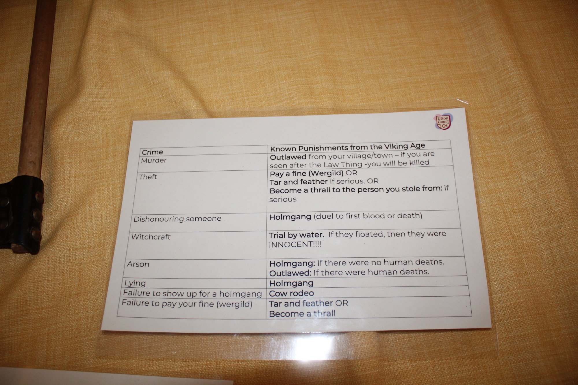 Having said that, they're not the sort of year group to let the rain get in the way of having lots of fun and learning new skills. The first part of the trip involved learning Viking battle moves, exploring Ufton Court's magnificent Tudor mansion and taking part in a 'Thing' - a Viking trial! Fortunately, we all survived the battle and, gruesome as it looks, everyone was still innocent and free after the trial- even those who'd had their lungs removed as a punishment!