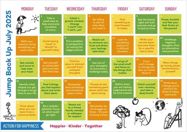 Happiness calendar—’Jump Back Up July’. Through this calendar, we