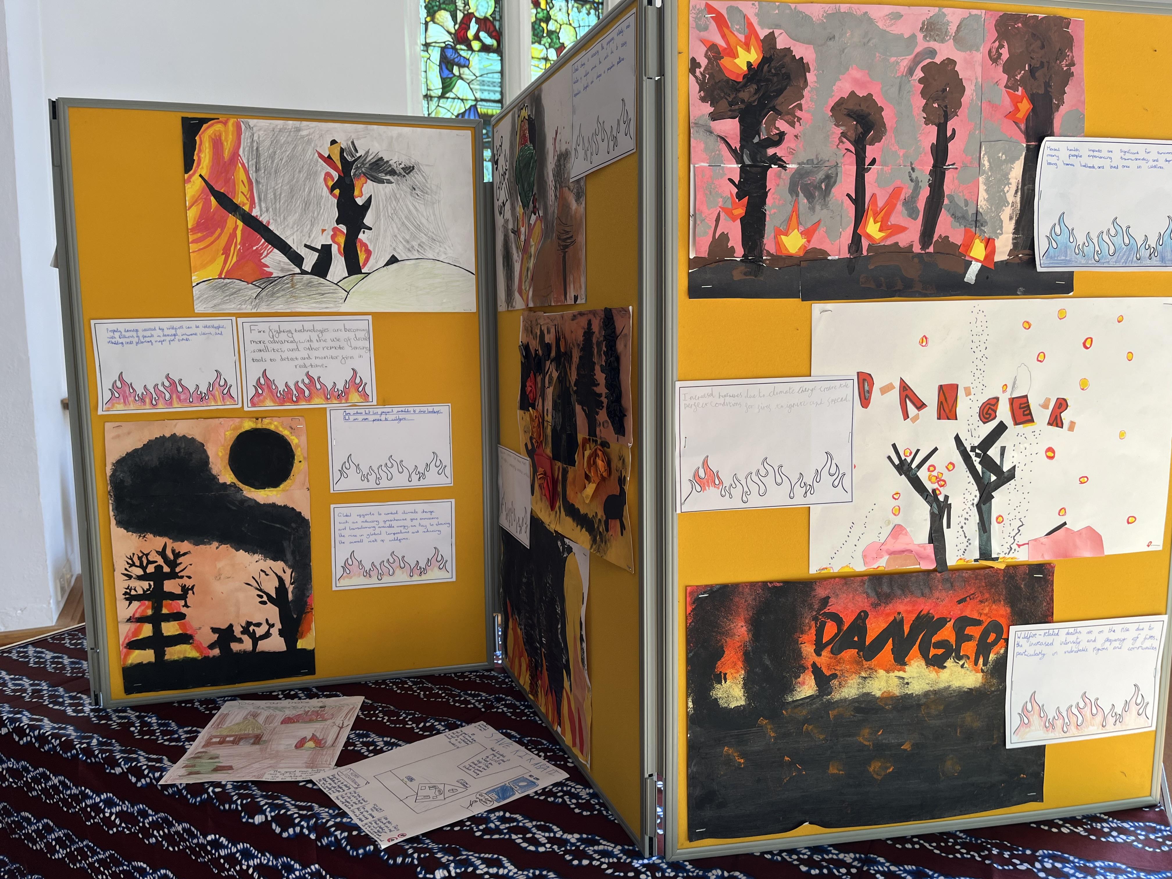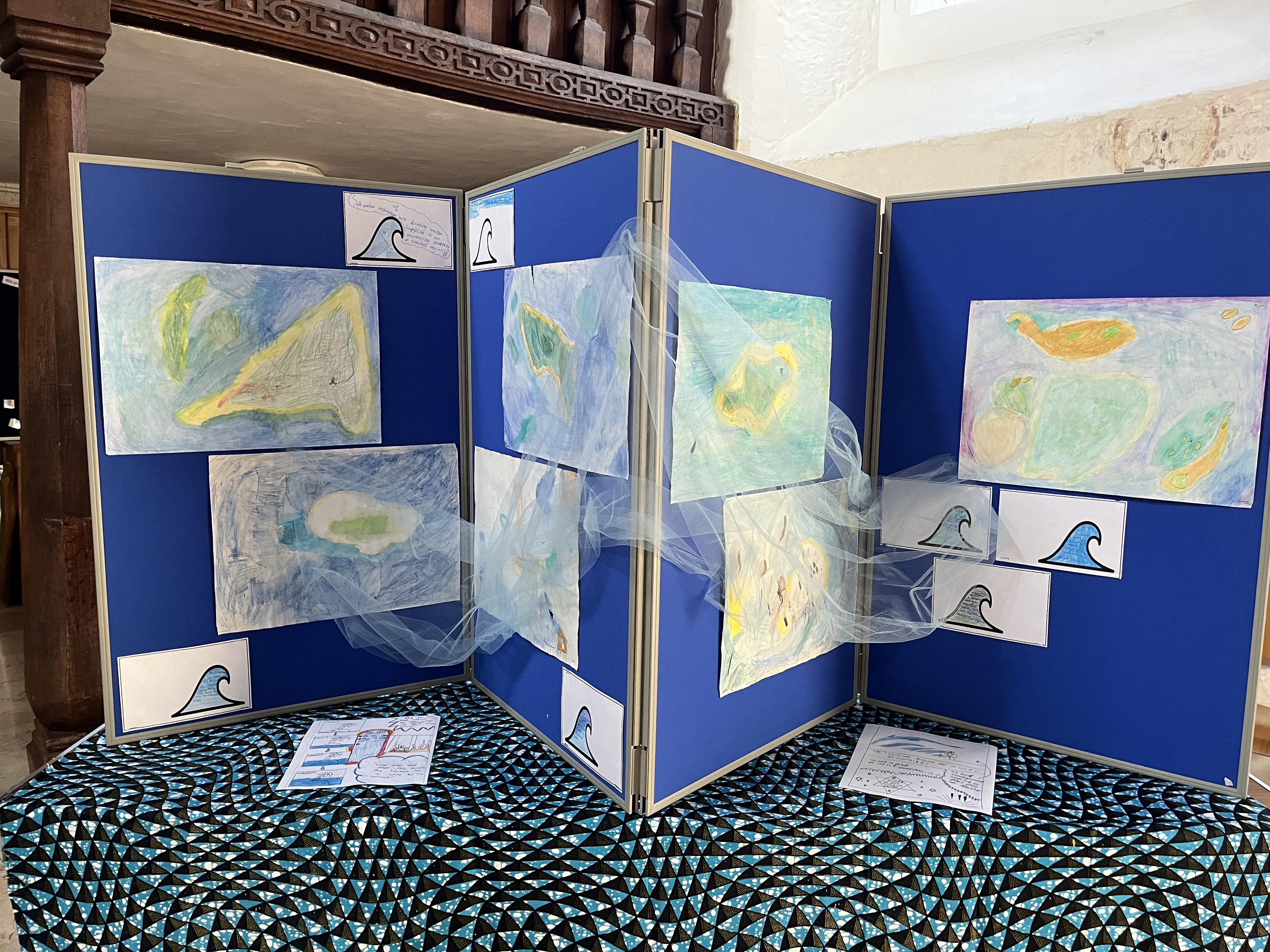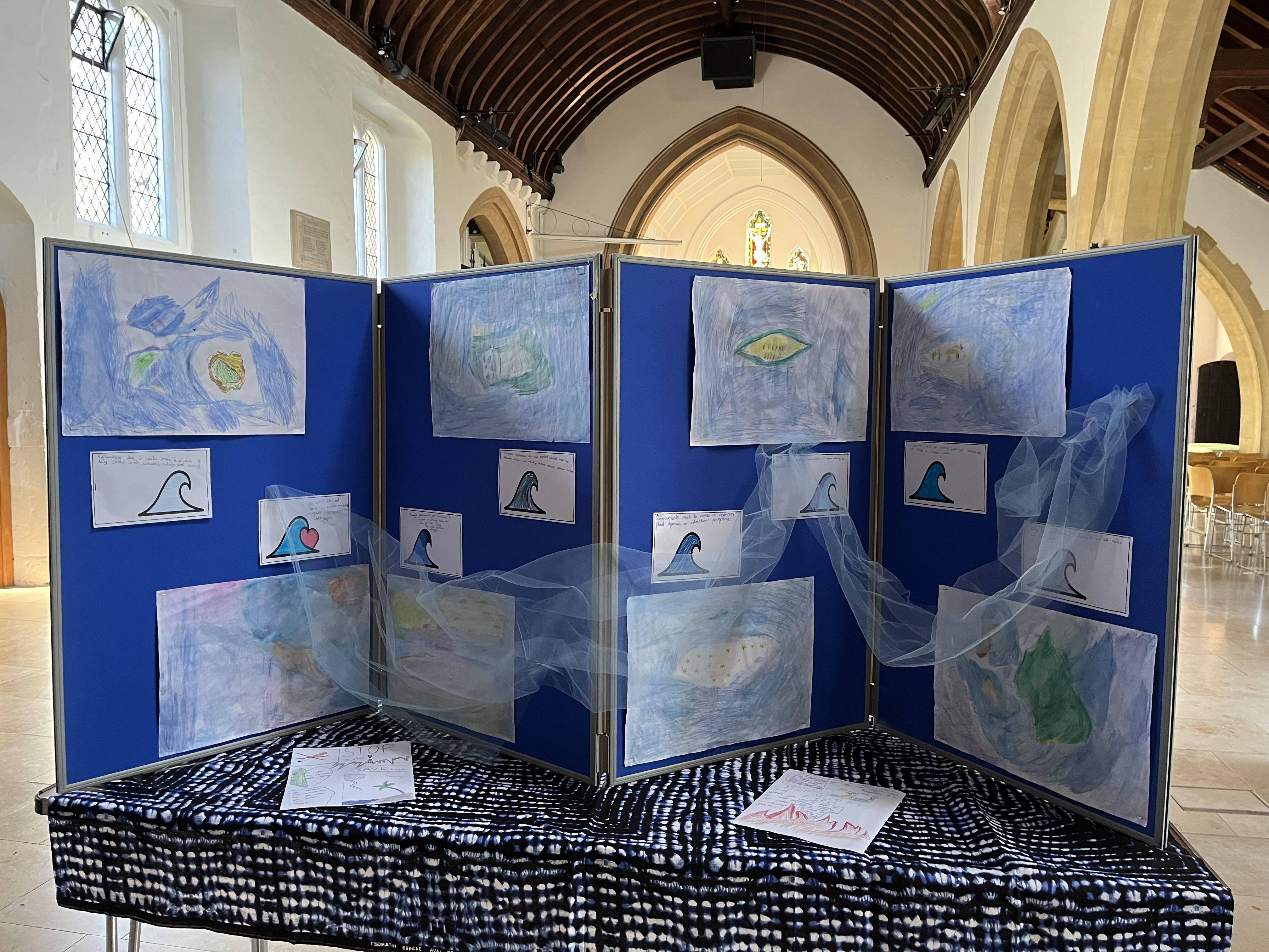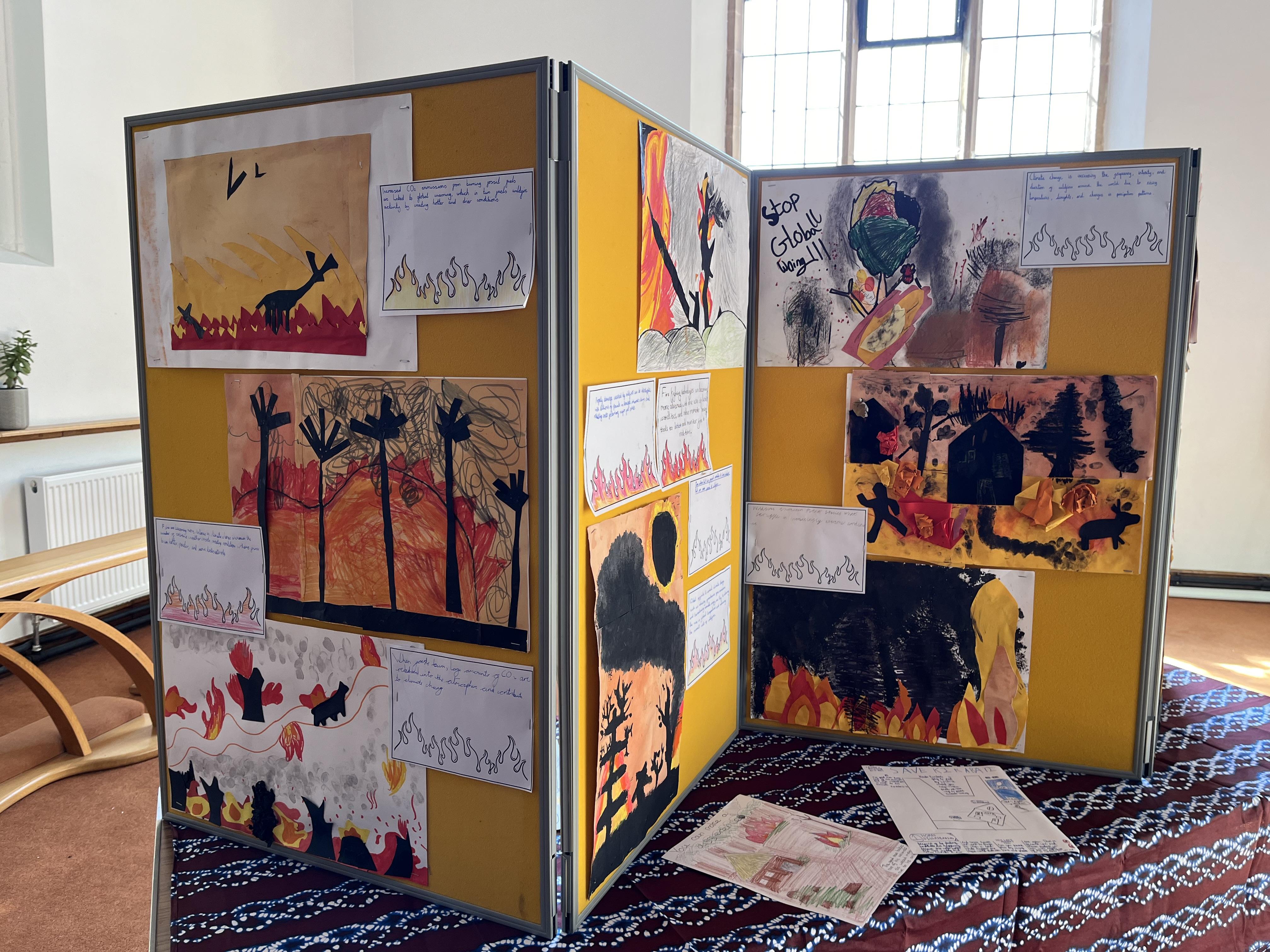 Our Global Ambassadors led the Bishop of Dorking on a tour of our ‘Creative for Climate’ Art Exhibition, sharing their passion for climate justice and their desire to make a difference. Each year group responded to an area of climate justice through an art outcome.