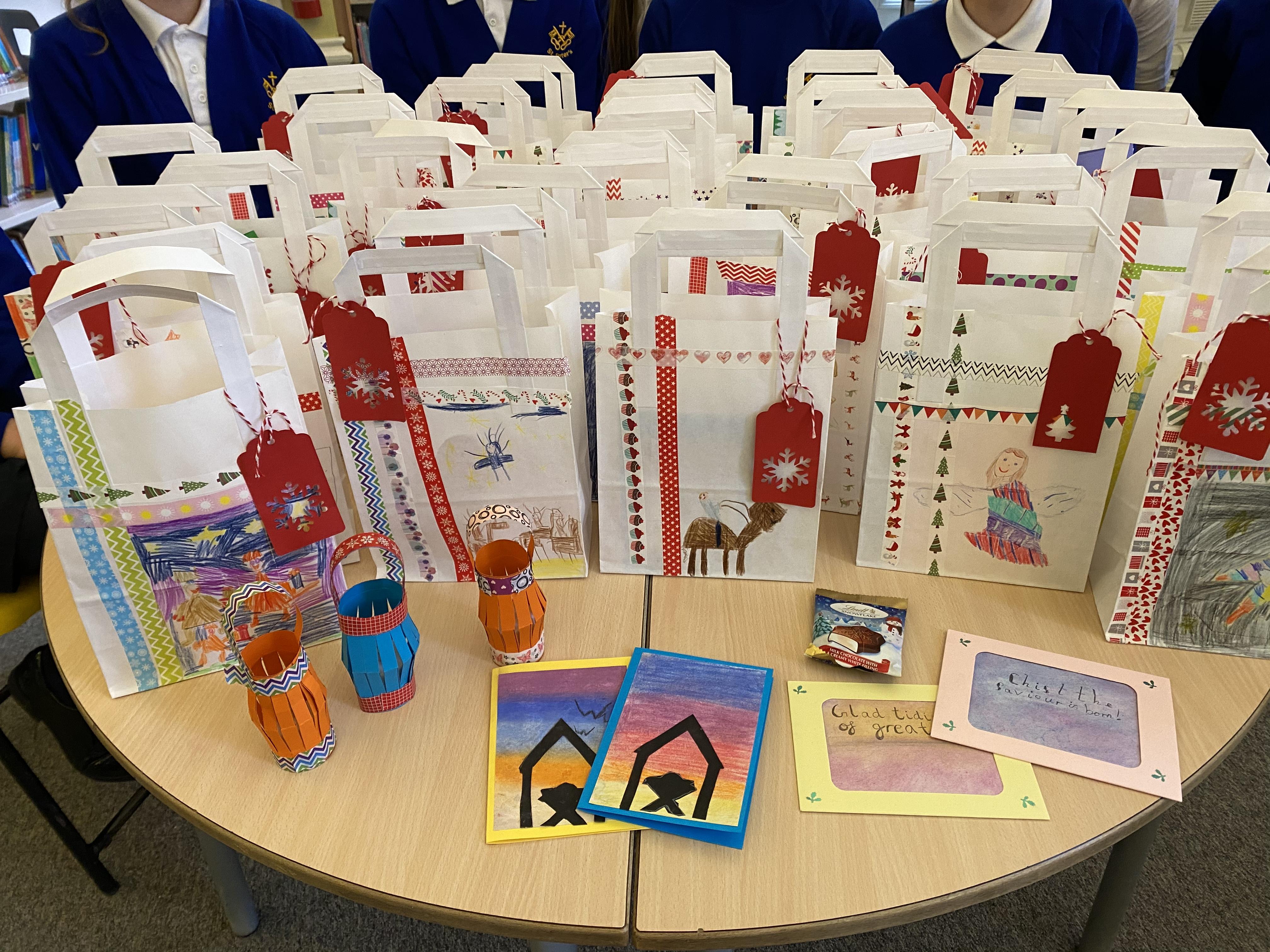 Christmas bags, made with love by our children for local, elderly residents in isolation. Inspired by their Christmas units in RE, Year 3 illustrated the bags, Year 4 made the cards, Year 5 created lanterns and Year 6 decorated uplifting verses. We are so proud of our children’s thoughtful contributions.